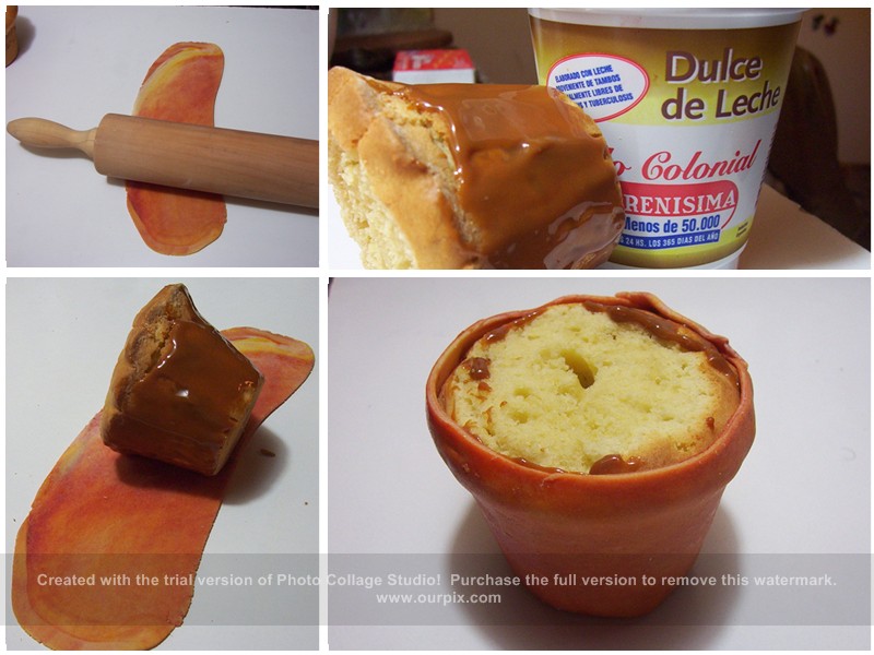 Es optativo este (macetero ) si quieres hacerlo preparas PASTILLAJE lo estiras le pones dulce de leche al budincito y le pegas el pastillaje