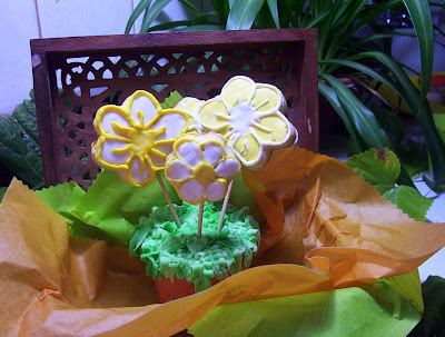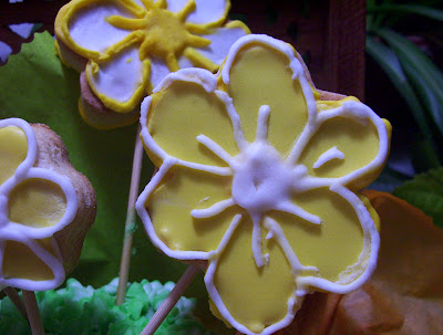 Luego pones en una bolsita glace que este espeso de otro color y le vas haciendo los borde primero los petalos para luego rellenar el centro