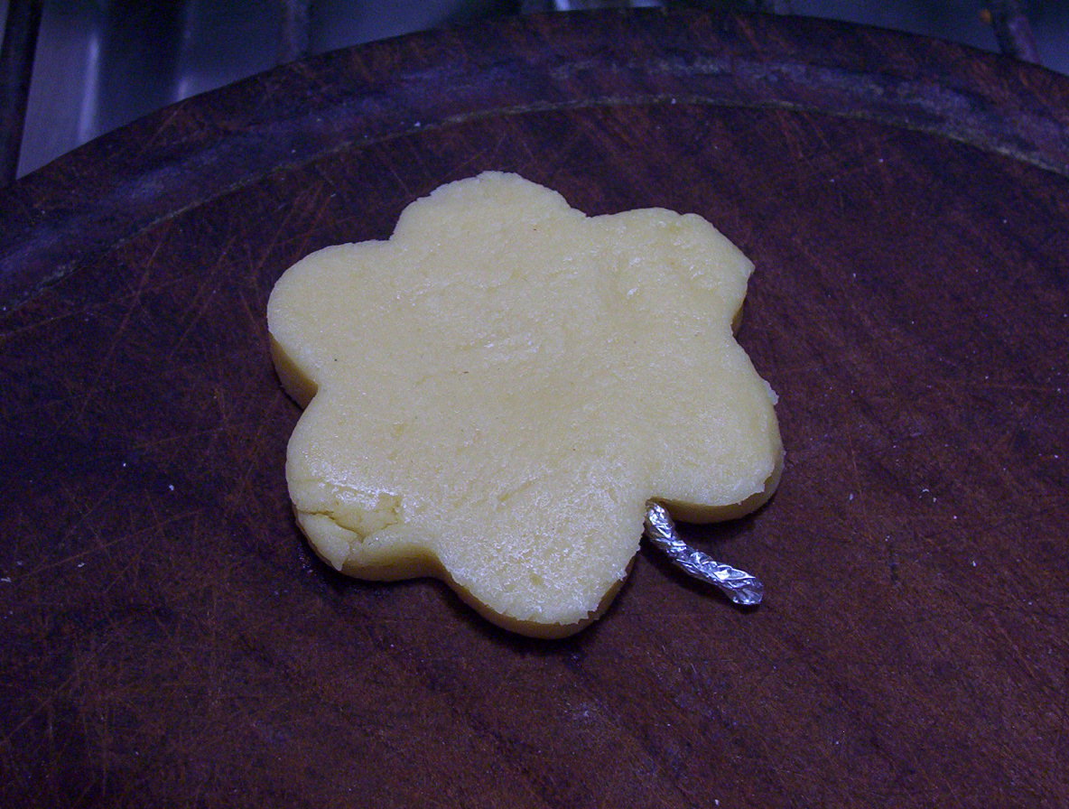 TIP muy importante ves el la foto unos palitos y papel aluminio tienes que forrar estos palitos que pueden ser de palitos de fósforos ( tienes que cortar las puntas )y este palito lo envuelves en papel aluminio para luego introducirlo dentro de la masa por un costado de la galleta como se ve en la foto